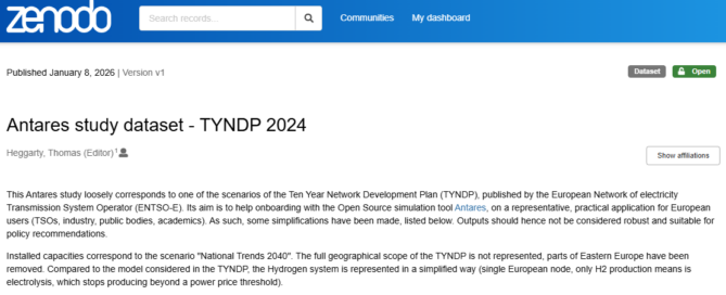 Publication du jeu de données Antares study dataset – TYNDP 2024 sur Zenodo